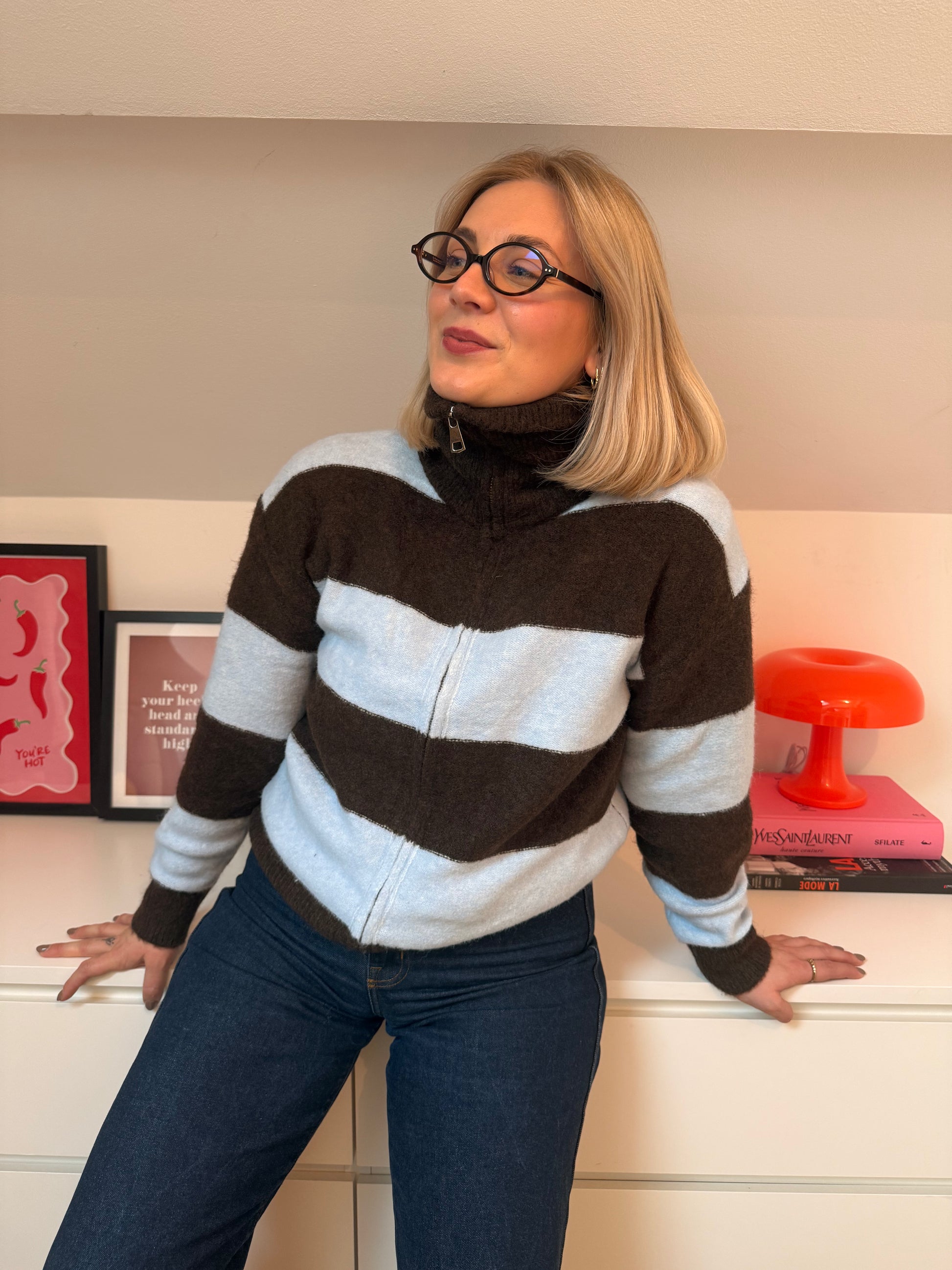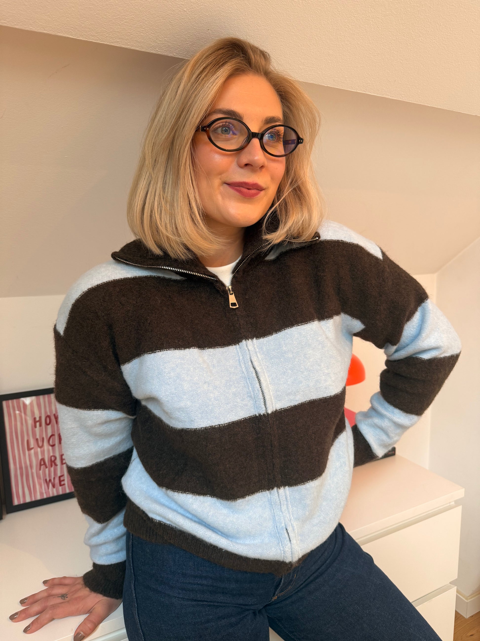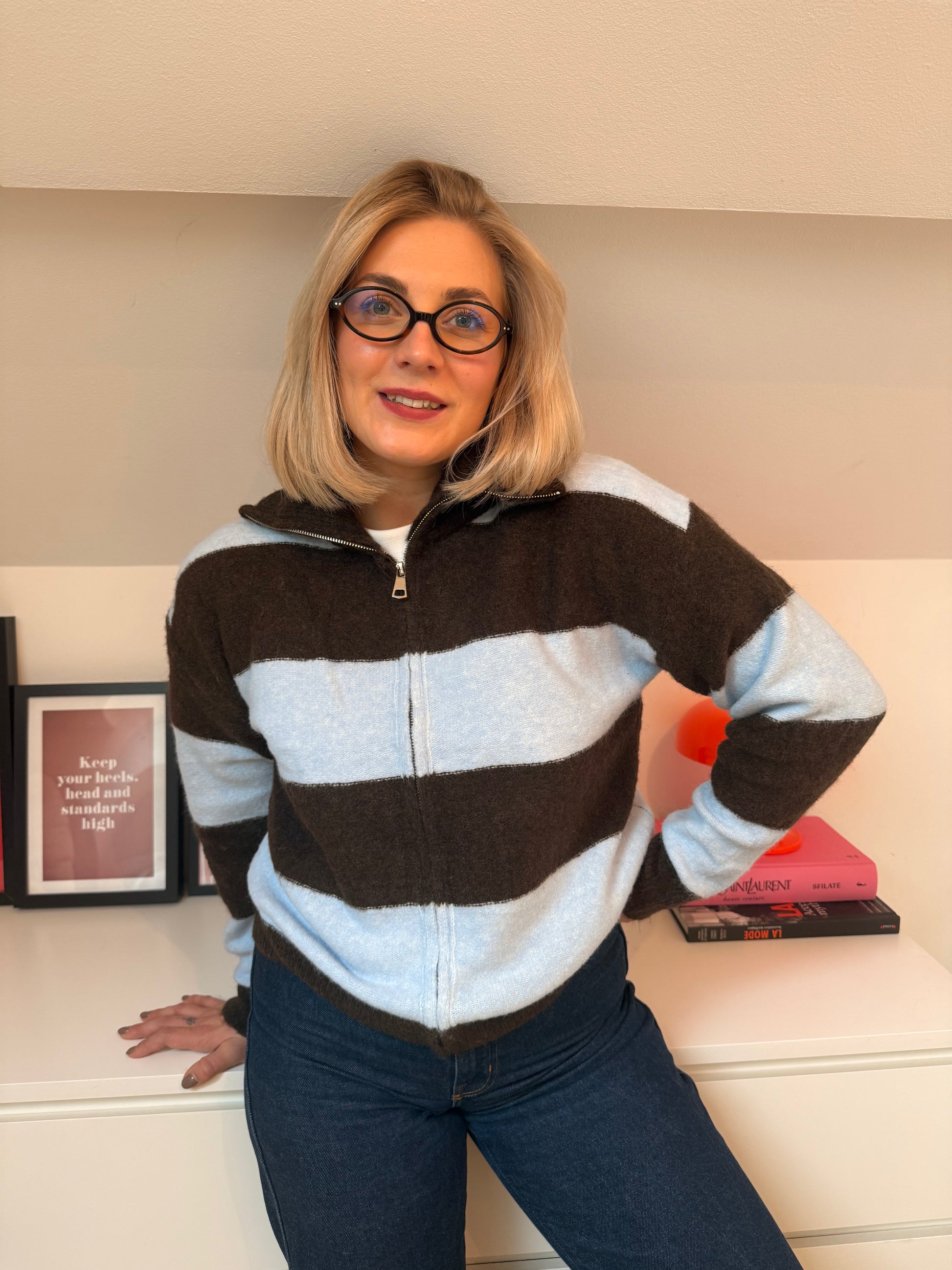 Gilet Manon - bleu et brun