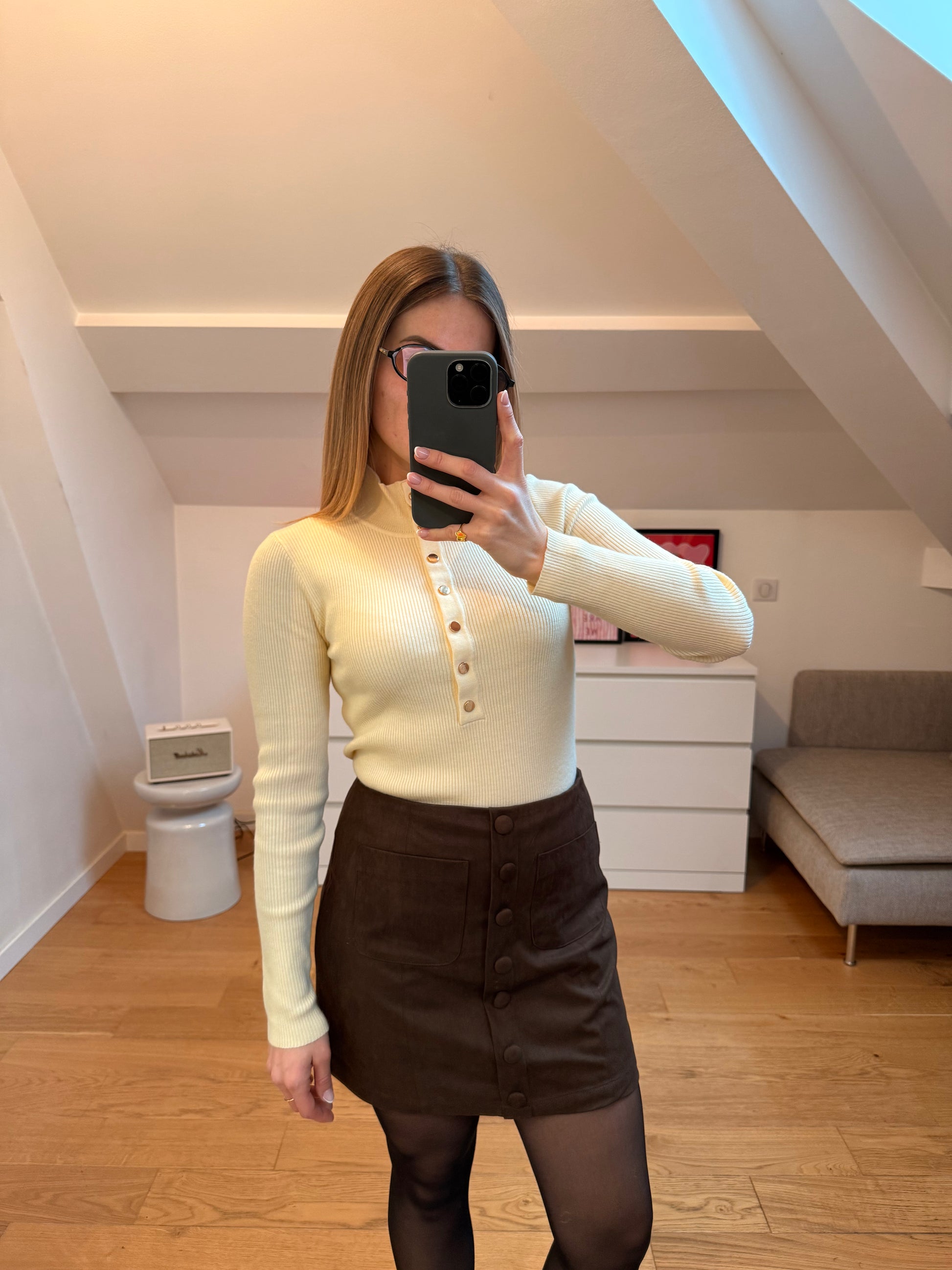 - Haut côtelé à manches longues