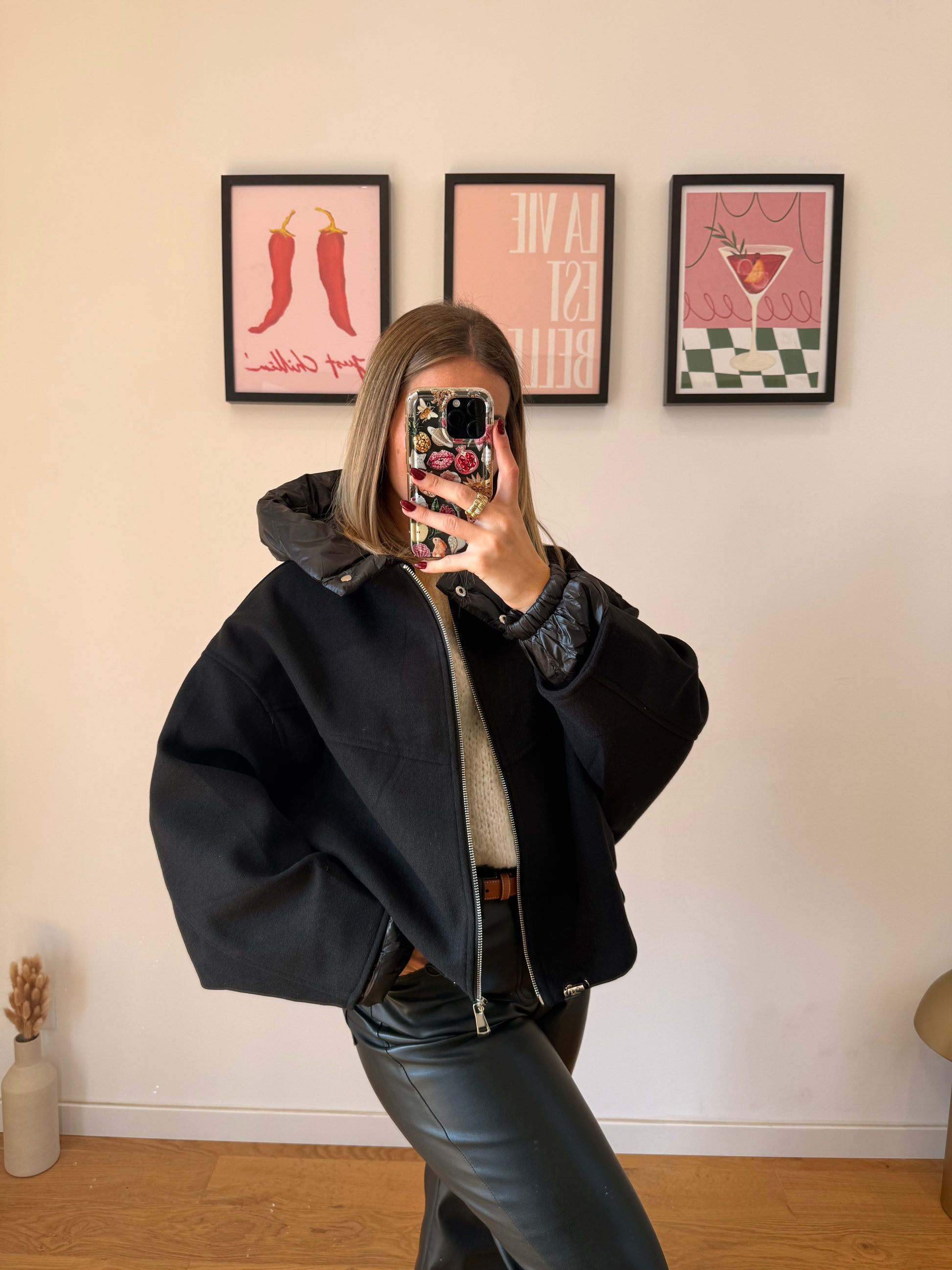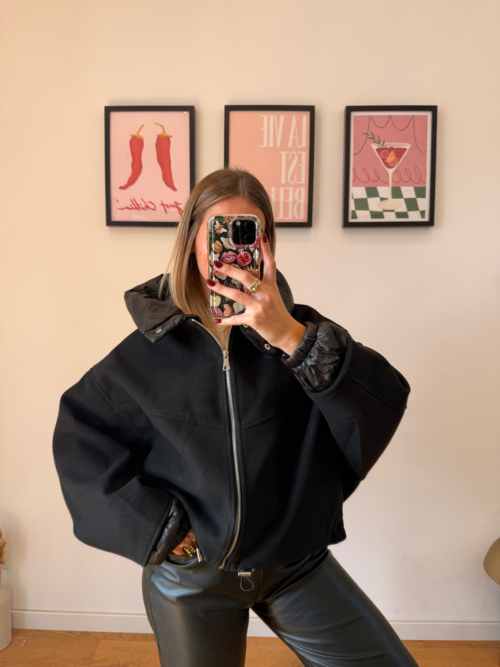 - Veste avec capuche matelassée amovible (possibilité d'enlever capuche et manches)